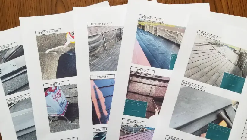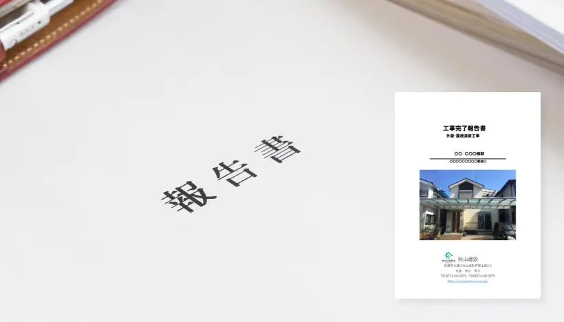 秋山建設では施工前・施工中・施工後の写真を撮影し、「工事完了報告書」としてお渡ししています。